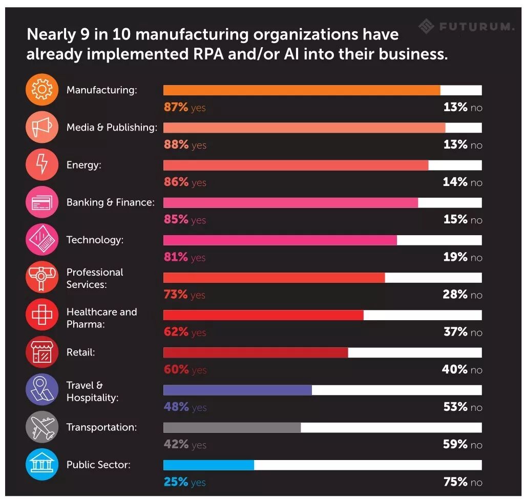 87%的制造业已将RPA/IPA应用到日常工作中;