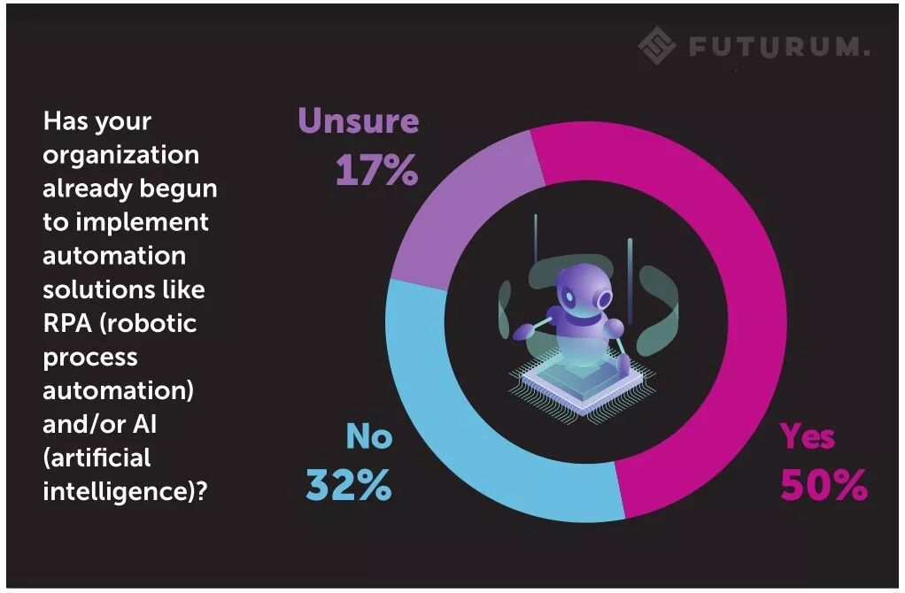 北美超过50%的企业已部署RPA、IPA、AI等自动化解决方案; -