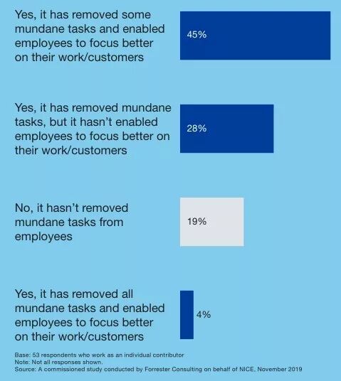4%认为RPA非常棒,可以让员工做更多的事情