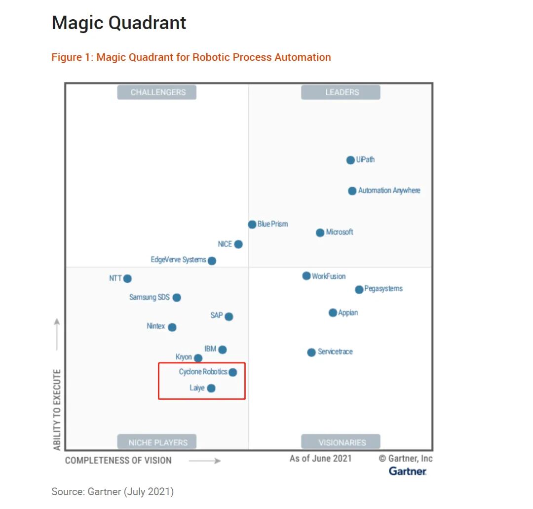 未经允许不得转载:RPA中国 | RPA全球生态 | 数字化劳动力 | RPA新闻 | 推动中国RPA生态发展 | 流 > Gartner发布《2021年RPA魔力象限》,两家中国企业首次入选,开创历史!
