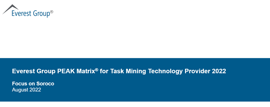 8月9日,全球知名咨询调查机构 Everest Group发布了首个任务挖掘报告“Everest Group PEAK Matrix® for Task Mining Technology Provider 2022”。