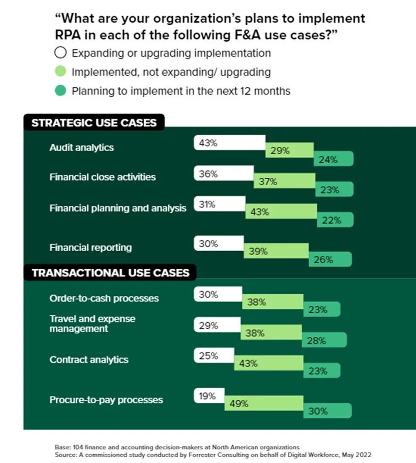 F&A正在积极扩大RPA的应用范围,尤其是战略方面用例以获取更高的自动化收益。