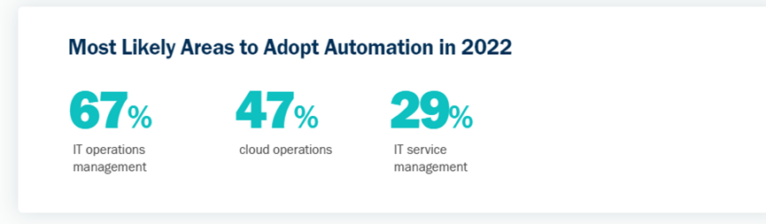 在应用自动化优先事项方面,67%受访者表示,将IT运营管理列为自动化优先事项;47%表示,是云操作;29%表示,是IT服务管理。