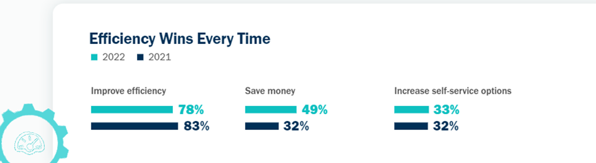 80%的受访者表示,节省时间和成本是应用自动化的主要目标。