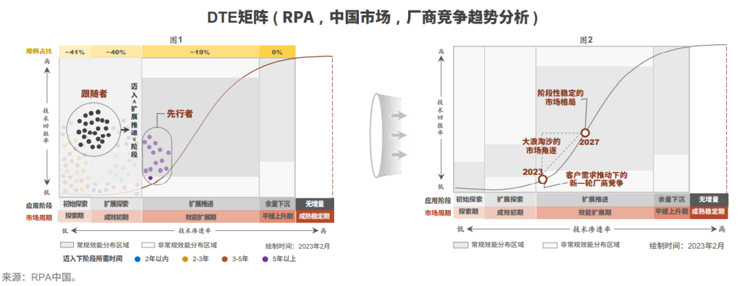 报告基于DTE矩阵,强调从RPA应用发展的宏观技术视角观察行业现状和未来趋势,并从中发现机会。这也是Market Insight报告中一项值得关注的创新研究价值。