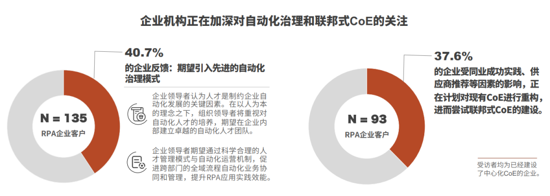 越来越多的大型企业会将自动化治理纳入RPA实践中不可或缺的一部分,联邦式CoE将会被更广泛地采纳。