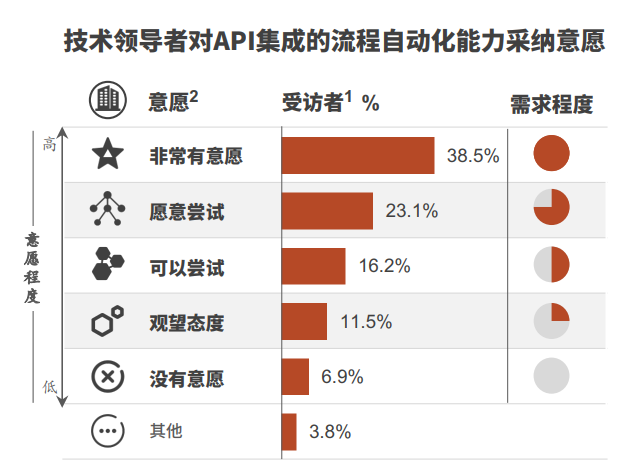 API集成的流程自动化扩展了自动化能力边界,至2024年,约60%的RPA企业用户将从供应商提供的这项能力中受益。