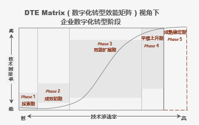 因为数字化阶段不同的企业,其信息化系统建设情况、技术能力、可调用的技术资源、RPA认知均会存在差异。因此供应商也需要为不同阶段的企业提供不同的服务。技术应用者或供应商可以通过“DTE Matrix(数字化转型效能矩阵) :企业数字化转型周期”来辅助决策(请联系分析师获取咨询)。