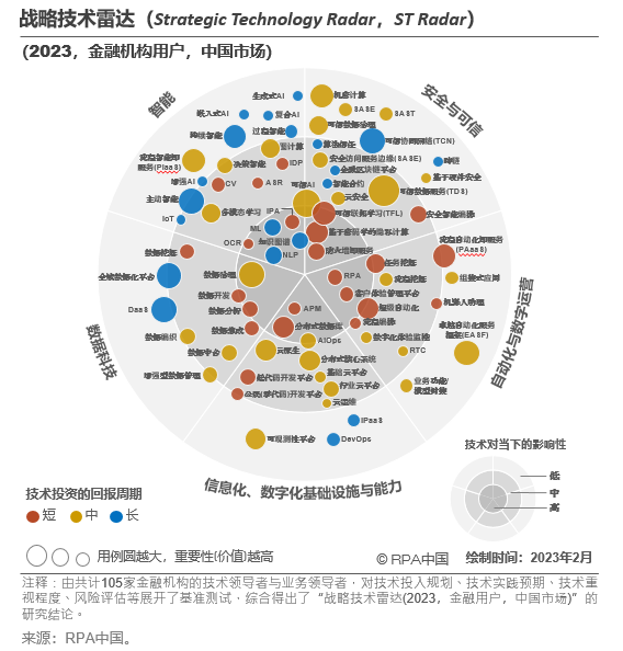 ❒自动化相关技术对金融机构业务运营、推动智能战略落地起到了关键作用。金融业作为数字化最领先的领域之一,对自动化的投入将不局限于RPA、IPA。任务挖掘、流程挖掘等相关垂类技术,以及超级自动化、PAaaS、EASF等战略性自动化技术更应该受到技术领导者的关注。