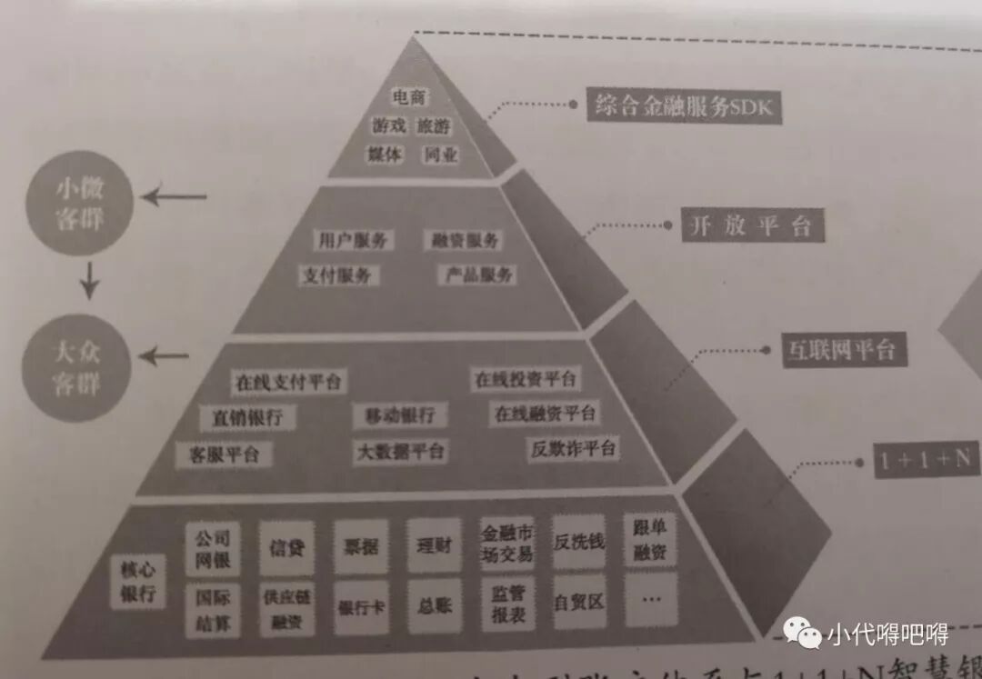 第一层是基础服务能力,重点打造核心银行、总账、信贷、理财、反洗钱、监管报送等一套传统银行服务能力;第二层是打造互联网化的金融与非金融服务能力,重点建设用户中心、在线支付平台、在线融资平台等互联网化金融服务平台;第三层是通过金融开发平台输出互联网化金融能力;第四层是实现与外部全生态场景的深度融合。