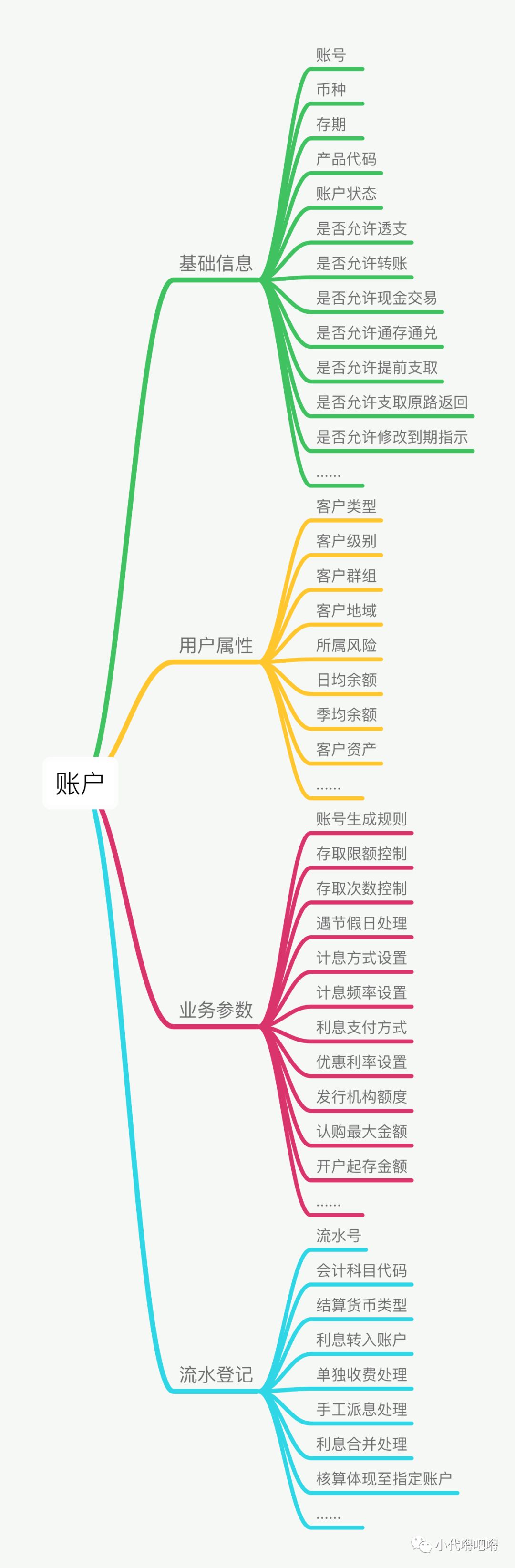 除此之外,核心系统还可以根据业务需要按交易渠道、交易金额、客户级别、存期等多个维度,设置不同的账户。