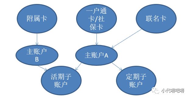 个人账户关系除上图外,可以设计为一张借记卡下关联多个主账户,默认一个主账户,允许更改卡下的默认主账户,还可以一个主账户配多张借记卡等。