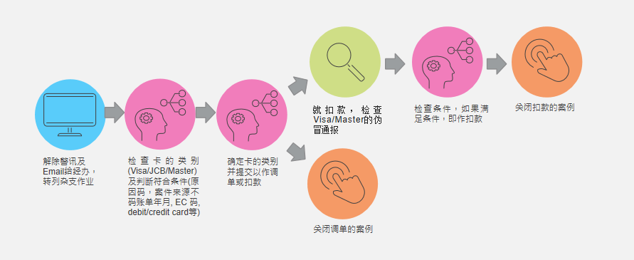 发卡调扣,为银行的另一项常见工作,涉及争议的转列杂支作业。处理之间需要涉及多项检查、判断以确定卡的类别和明细,再根据情况转列处理。