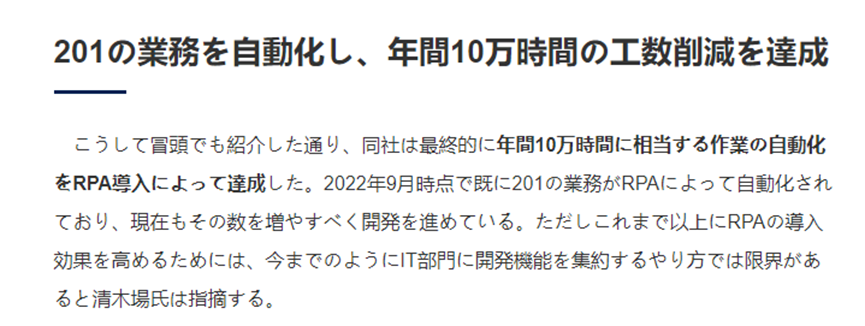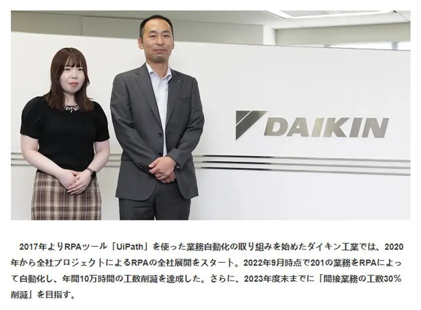截至2022年9月,大金工业对RPA的应用在全公司范围获得了巨大收益,已将201项业务流程实现自动化,每年节省10万工时。