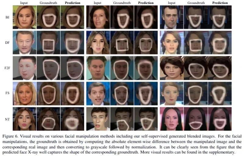 他们评估了Face X-Ray归纳四个数据集的能力,包括上述Face Forensics++语料库的一个子集;Google发布的数千个视觉deep fake视频集合,deep fake用于检测挑战赛的图像;以及Celeb-DF,一个包含408个真实视频和795个合成视频且视觉伪影减少的语料库结果显示,Face X-Ray可以快速地识别出之前未被找出的伪造图片,并准确地预测出图片混合区域。