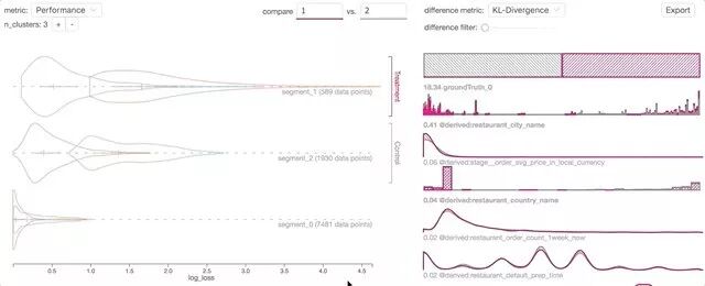 Manifold利用所谓的聚类算法(k-Means)将预测数据,根据其性能相似性分成多个段。该算法通过其KL散度对特征进行排名,KL散度是两个对比分布之间差异的度量。一般而言,在Manifold中,较高的发散度表示给定的特征与区分两个片段组的因子相关。