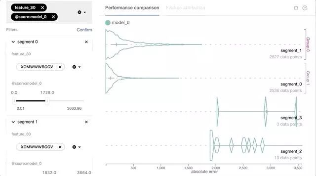 基于每个实例的预测损失和其他特征值的交互式数据切片与性能比较:用户将能够基于预测损失、地面真实性或其他感兴趣的特征对数据进行切片和查询。该功能将使用户能够通过通用的数据切片逻辑快速验证或拒绝其假设。
