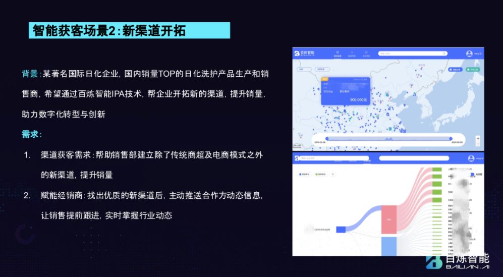 CEO 冯是聪以某知名日化企业为例谈道,客户希望在传统商超及电商渠道外,开拓新的 B 端渠道,以此提升销量。
