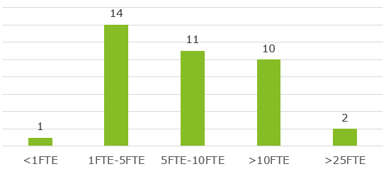 调查结果显示,多数CoE能够节省的人工在10个FTE以内,约72%的CoE都超过或显著超过了预定目标。