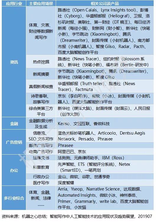 四、智能写作主要应用场景与相关代表公司