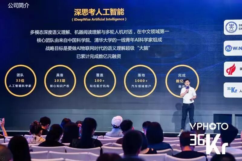 介绍一下深思考:深思考最擅长多模态深度语义理解,在短文本理解方面,聚焦在人机对话方面,目前是中文领域上下文多轮人机对话技术权威赛事评测的多届蝉联冠军;在长文本理解方面,主要体现是机器阅读理解,最新的2019语言与智能技术竞赛拿了全世界中文的第一名。深思考团队来自于中科院和清华大学的AI一线科学家。我们未来的目标,是做5G时代或者万物互联时代语义理解的大脑。我们的产品就是多模态深度语义理解引擎iDeepWise.ai。语音识别能解决听见的问题,图像识别解决看见的问题,那如何做到既听懂也看懂,这就是多模态语义理解要解决的问题。
