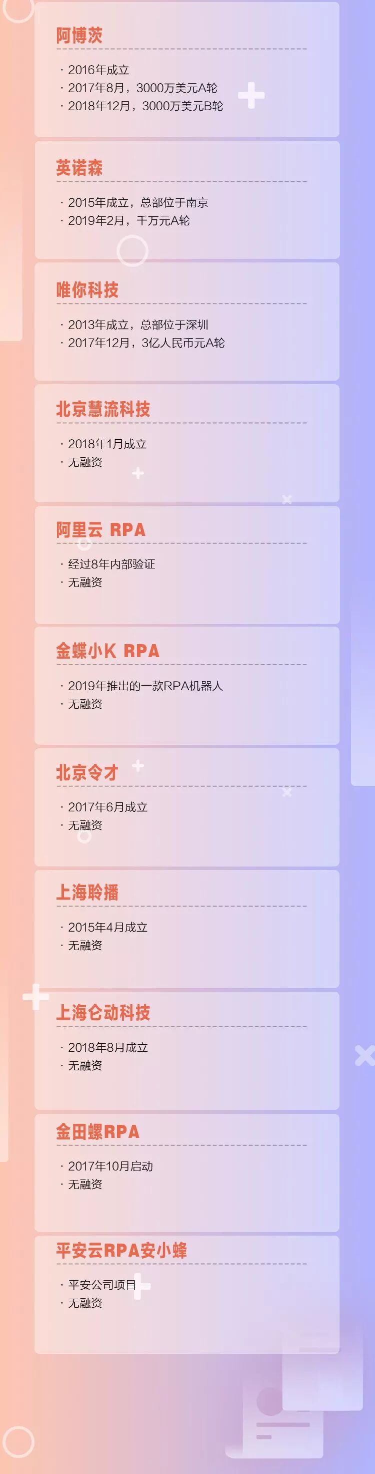 未经允许不得转载:RPA中国 | RPA全球生态 | 数字化劳动力  | RPA新闻 | 推动中国RPA生态发展 | 流 > 16家融资以及31家厂商信息,3张图看清RPA的未来
