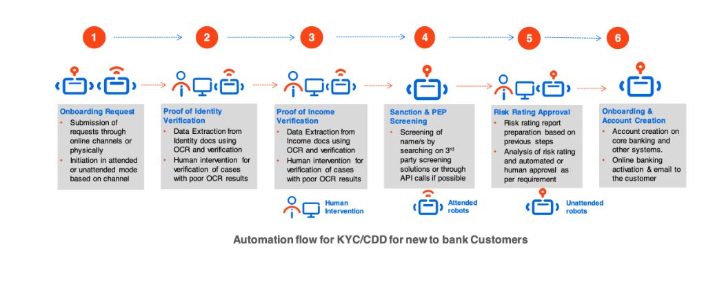 ,我们的机器人的价值就会更加凸显。(下图显示了KYC/CDD过程中的自动化步骤)