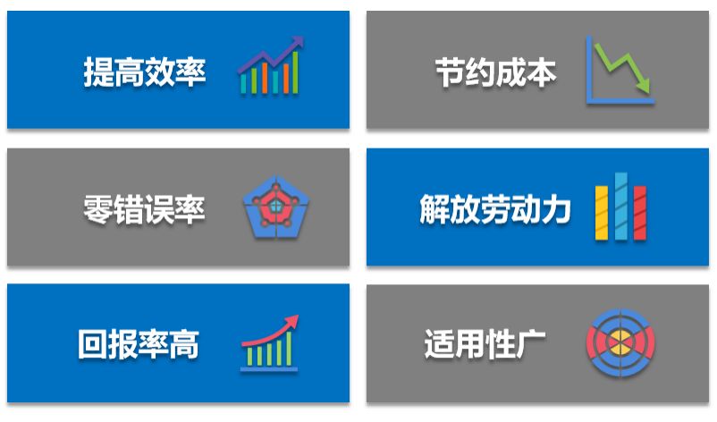金智维RPA助力企业效率提升50%以上,更高的生产效率意味着更低的价格成本,工作任务的自动化除了可以降低成本,还能提高质量、可靠性以及便捷度。