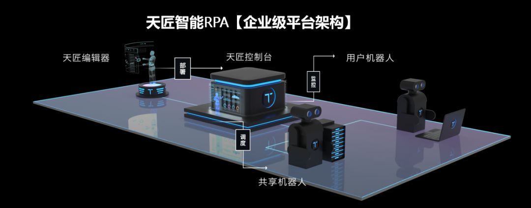 天匠智能RPA平台基于桌面自动化技术的积累,产品易用性高,对于业务人员来说易于上手,同时银行级别的安全加密、云级弹性伸缩、高密度模式运行、权限管理和流程版本管理等企业级产品功让IT团队能够规模化完成天匠RPA平台部署。