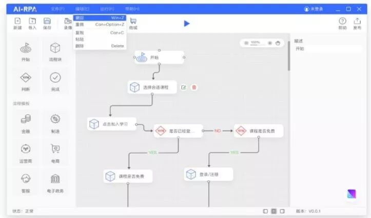 RPA接入和使用方便。如“实在RPA”支持可视化操作,清晰&易用的拖拽式交互体验,让用户在“机器人设计”的过程中“行云流水”,根据自己设置流程来适应自己特殊的行业与业务需要。没有编程经验的员工只要熟悉业务流程,也可在短时间内通过“拖、拉、拽”模型组件实现RPA机器人设计。