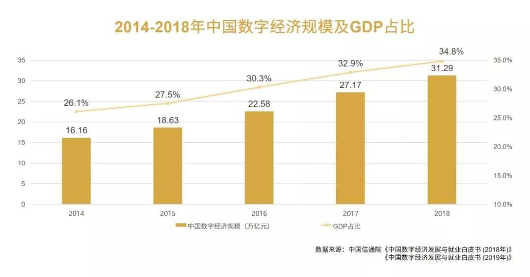 在第三次工业革命方兴未艾、第四次工业革命已席卷而来的大浪潮下,数字经济已经成为推动我国经济高质量发展的重要引擎,占GDP比重逐年增加。