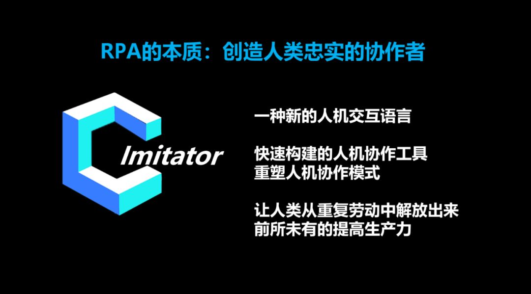 “RPA是一个平台,我们可以利用其开发出各种各样的工具,最终帮助企业释放人力价值、提高生产效率。”