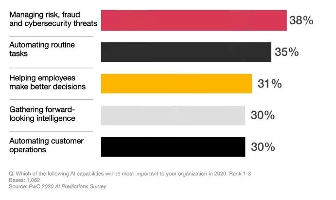 1、AI将用于处理一些非结构化数据、重复性高和网络安全等业务流程