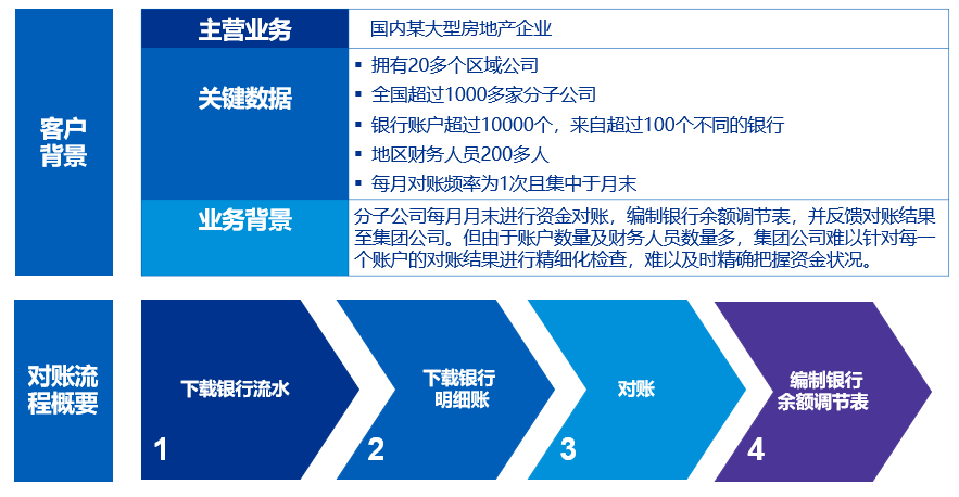 对于资金管控业务场景,在面对银行账户多,交易流水量大及账务处理规范性弱的情况下,RPA有效应对“一对多”及“多对多”资金对账场景,协助企业实现资金及时准确管控;