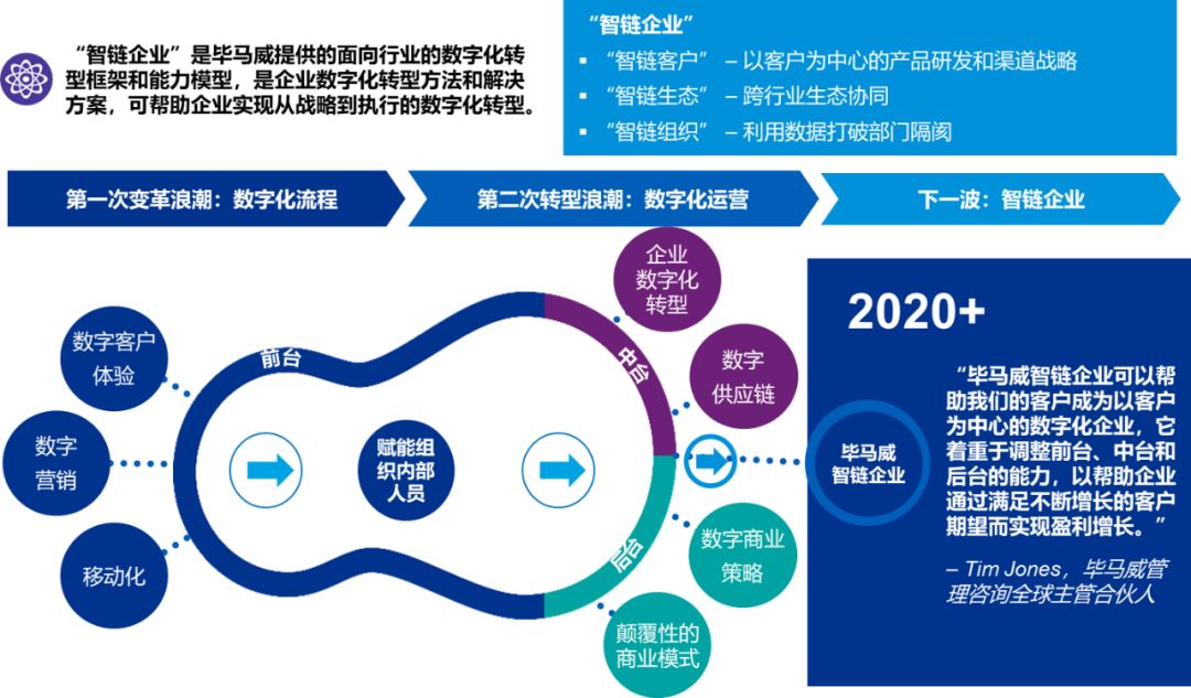 为更好的帮助客户进行数字化转型,马总监也介绍了KPMG“智链企业”-面向行业的数字化转型框架和能力模型。通过数字化流程,数字化运营,最后转型升级为以客户为中心、跨行业生态协同、利用数字打破部门隔阂的智链企业。