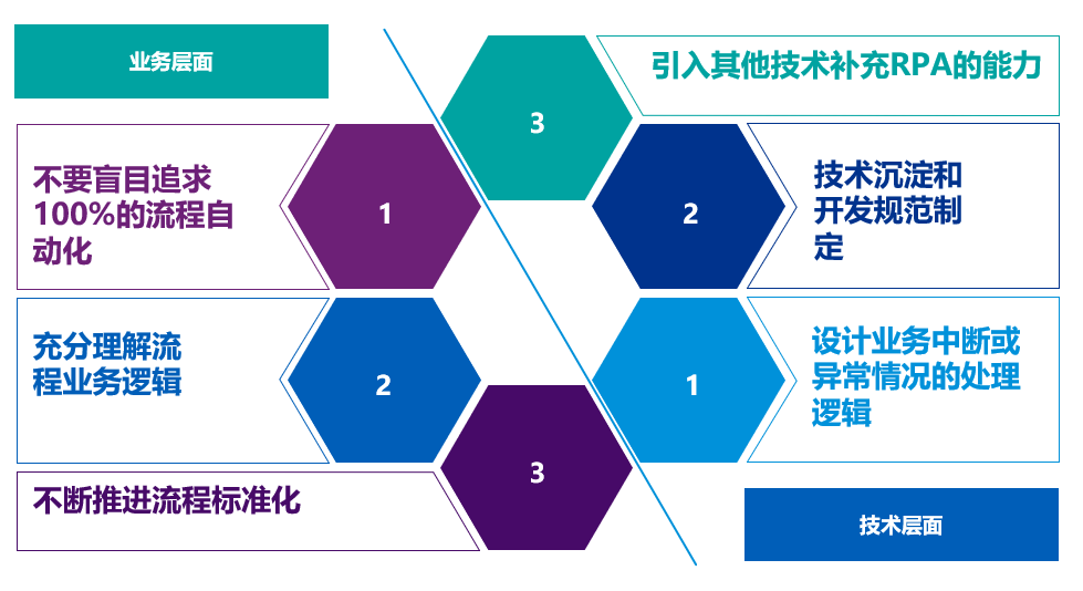 最后张经理强调,RPA项目一定的业务理解+技术的深度融合,一个有灵魂的机器人,一定是对业务有深刻理解并结合恰当的技术手段创造出来的。下面是根据项目经验总结分享的机器人开发中的注意事项。