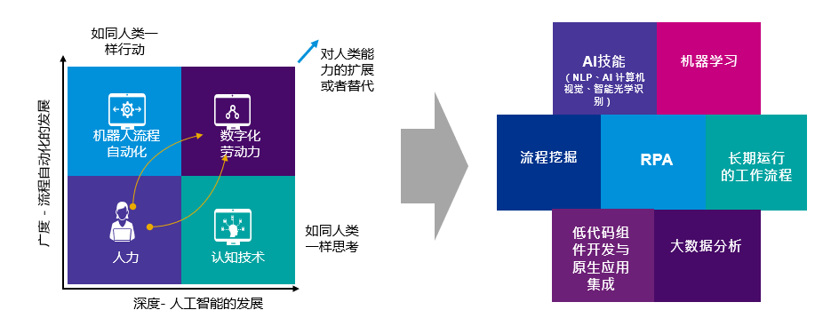作为进入人工智能与认知技术自动化的起点,RPA将从深度更多的融合数据分析,人工智能以及低代码原生应用集成,推动数字化劳动力更多更深入的发展与部署,结合流程挖掘后的流程评估与识别,同时将从广度助力所有可能的业务流程实现端到端自动化。