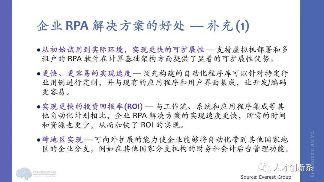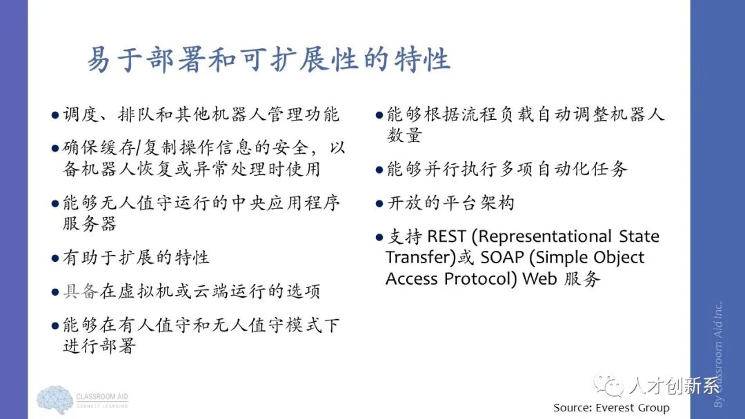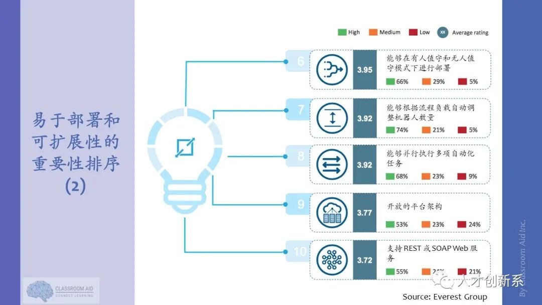 大多数部署期望: 能自动化常规业务和基于规则之流程,这些流程可以完全委托给无人值守模式的机器人。然而,对于某些复杂且安全敏感的流程,可能需要在有人值守模式下部署机器人。成功的部署及其随后带来的好处则会鼓励企业扩大其 RPA计划的规模。