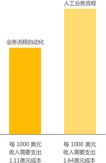 自动化带来诸多优势。美国生产力与质量中心(APQC)在2018年《通过订单自动化改革客户服务和运营》报告中指出,无需员工干预销售订单处理流程的企业前20%客户实现的增长比人工完成相关流程的企业高将近200%(15%年增长相较于8%年增长)。此报告还发现仍采用人工处理订单的企业成本更高。