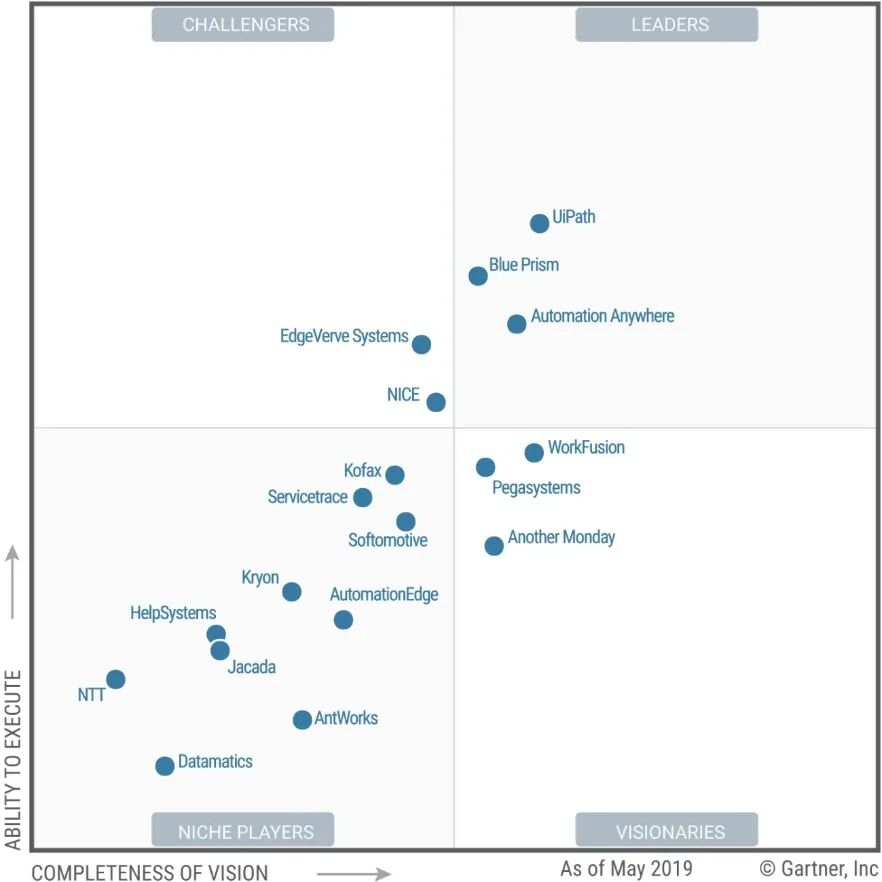 Gartner在19年5月发布了RPA幻方图,除了Leader象限厂家外,其他厂家多有微词,一个核心问题就是,RPA市场发展迅猛,产品迭代更新非常快,而Gartner幻方图评测的版本明显滞后,无法反映产品真实形态,可能误导潜在客户。
