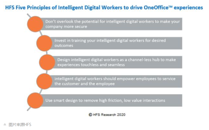 HFS强调了使用智能数字工作者的五个重要原则,所有希望实现这些解决方案的公司都需要考虑这些原则: