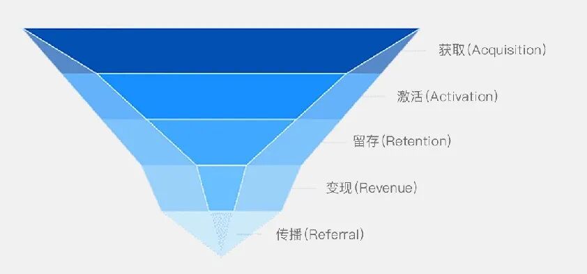 从上到下来看,每一步都会有用户流失,获取、激活、留存是一个漏斗模型,这个用户增长模型主要是因为其掠夺式增长方式,也被称为“海盗模型”。