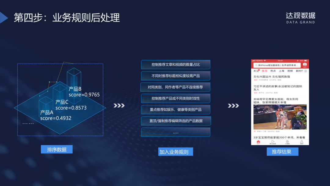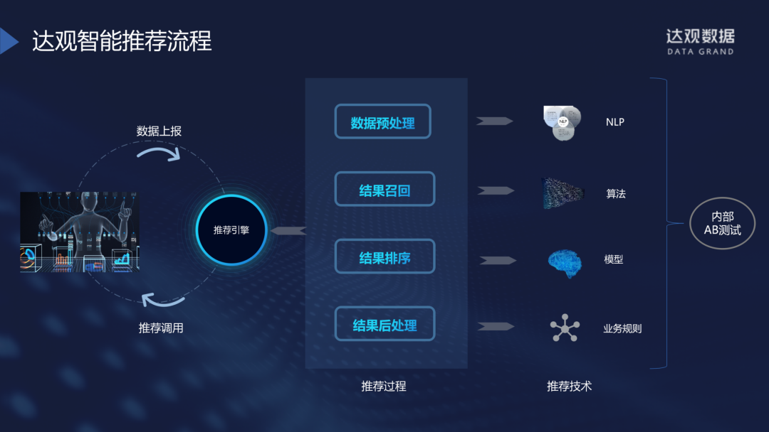 从架构来说,通用的推荐引擎会充分理解业务场景。从内部来说,达观服务的数百家客户完全使用一套推荐流程。对于行业或者推荐内容进行高度标准化工作,我们可以根据不同内容、不同优化指标快速完成需求开发、效果调优。
