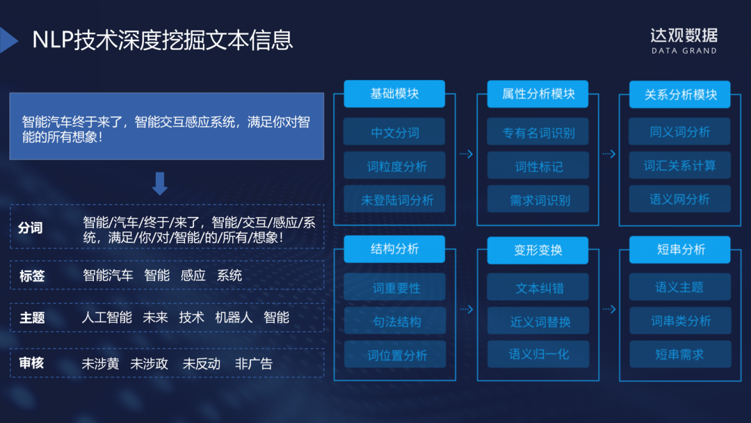 NLP一般分为字词级、段落级和篇章级处理,主要用于文本信息的挖掘分析,包括中文分词、同义词或近义词的挖掘,内容关联性分析,标签挖掘、摘要提取等,最终对物品文本信息进行全方位的语义理解,为推荐精准度打下坚实的基础。