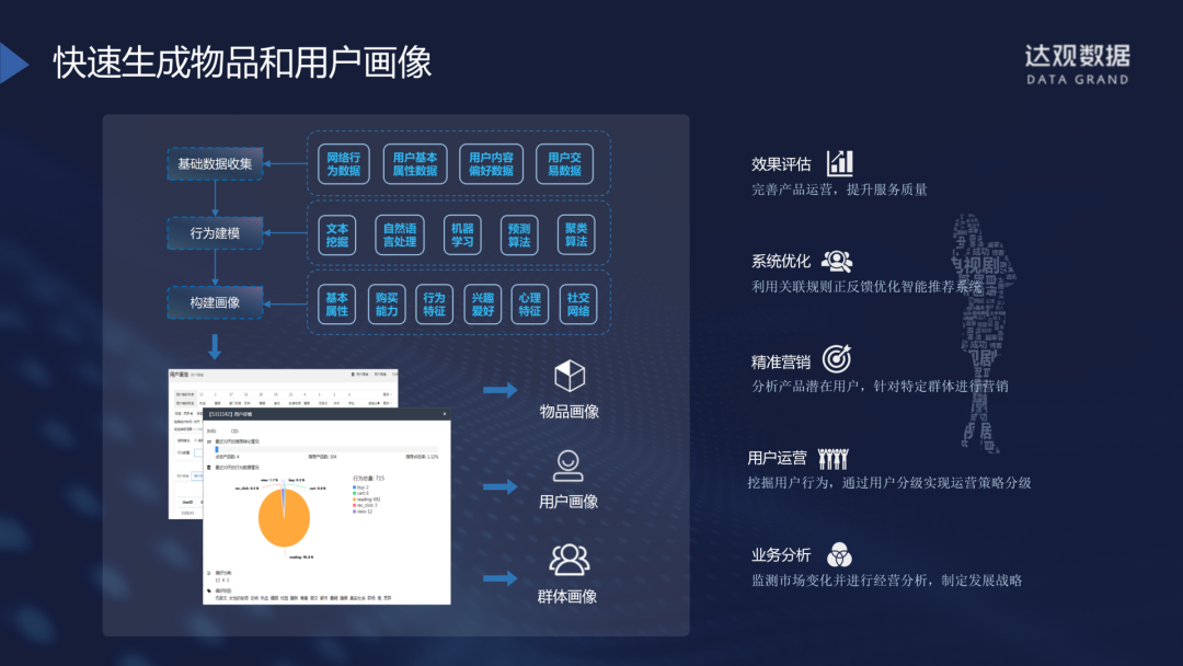 还有一部分是用户自动化的打标签,我们通过自己标注的数据,或者通过把物品本身的使用数据映射到用户身上的方式,都可以完成用户自动化打标签。