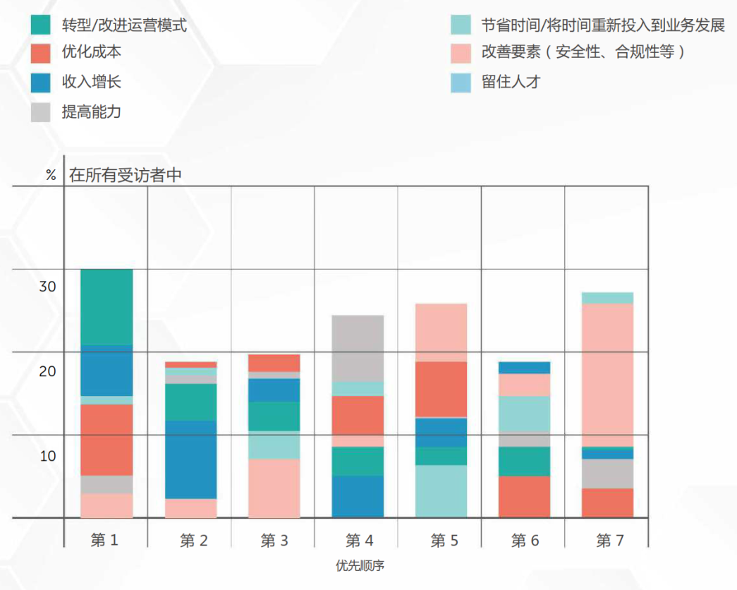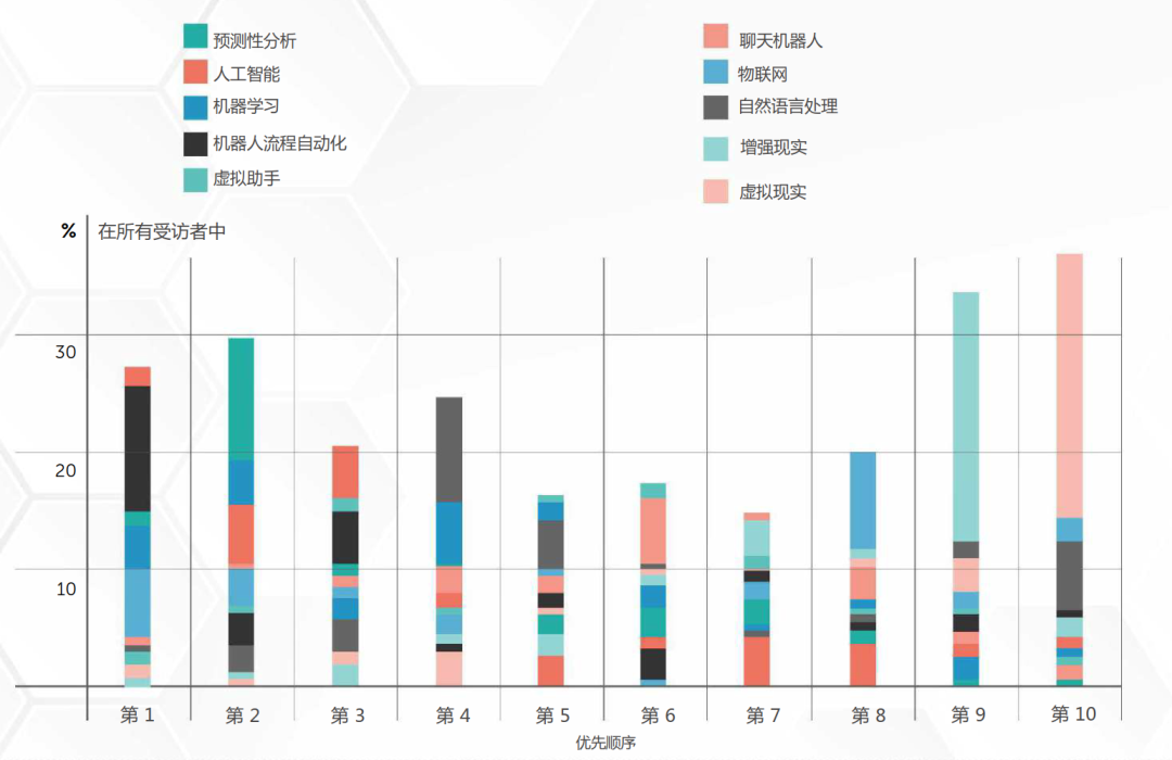 当被问及哪些技术对企业影响最大时,大约45%的高管选择预测性分析作为第一或第二重要的技术。