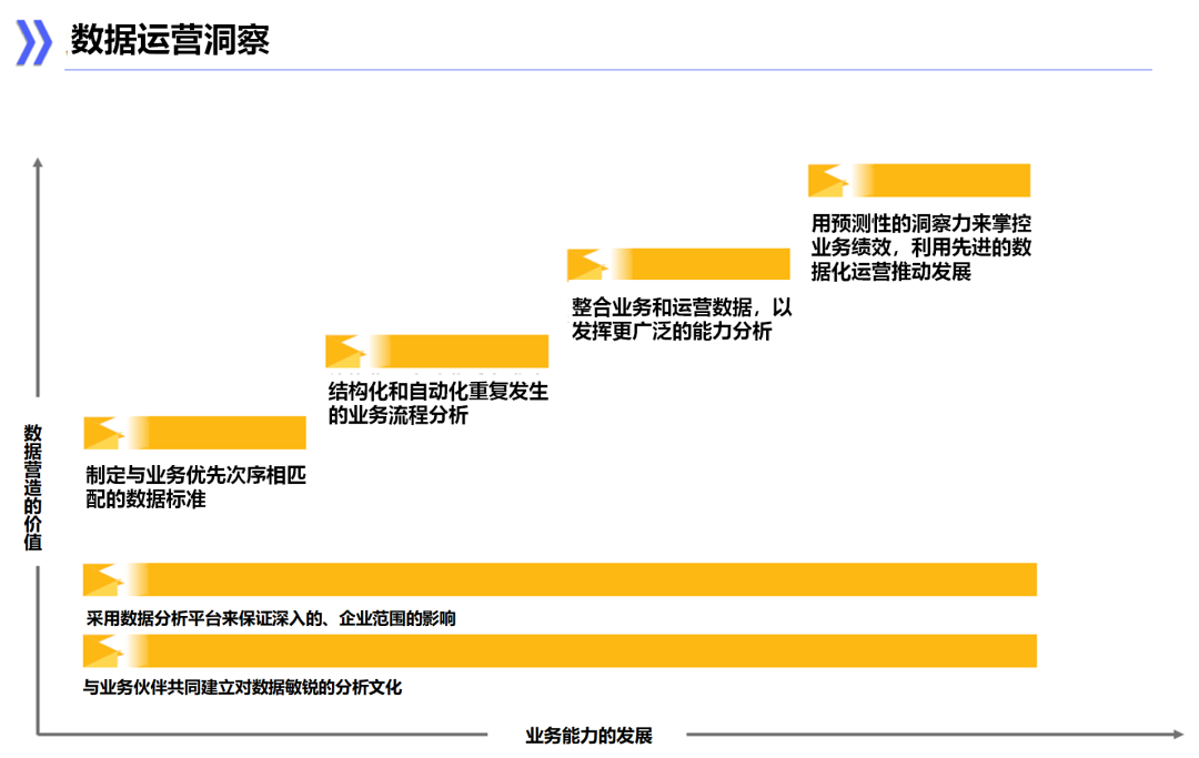 泛BI同样也是数据化运营特征所要求的,是更高一级的数据化运营的全民参与。在这个阶段,业务部门的员工不仅要积极参与数据分析和模型的具体应用实践,更要求他们能自主自发地进行一些力所能及的数据分析和数据探索。