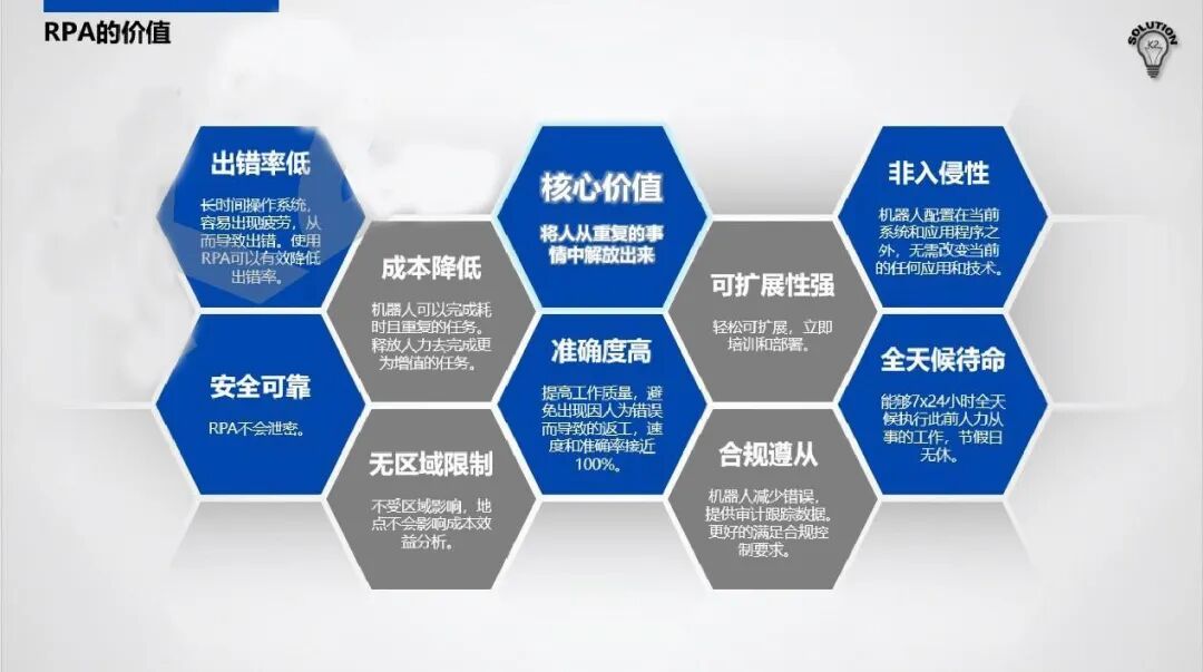 总之,RPA是公司更大数字旅程中的一项有价值的自动化资产,如果实施得当,可以带来巨大的成果。然而,大多数RPA实现并没有实现所承诺的回报,仔细的回顾揭示了RPA成功的一些重要的领先指标。将RPA与更广泛的数字工具相结合的组织似乎比其他组织更快地实现价值。将深度设计和广泛的变更管理融入该方法的实施受益于端到端流程中更强大的业务成果。治理比项目计划中的任何其他项目都更能从一系列自动化中提取真正的商业价值。