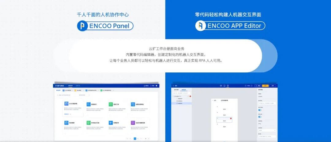 一直以来,云扩科技将ENCOO RPA定义为企业全面实现人机协作的效率工具,坚持将RPA工具的渗透率做到100%,让每个员工都能和人工智能协作的愿景,不断追求“简单·智能,人人可用”。