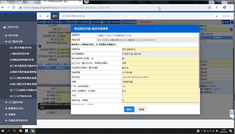 4)然后我们可以看到机器人快速地自动录入收货人、发货人、申报单位以及其他相关的申报基础信息。
